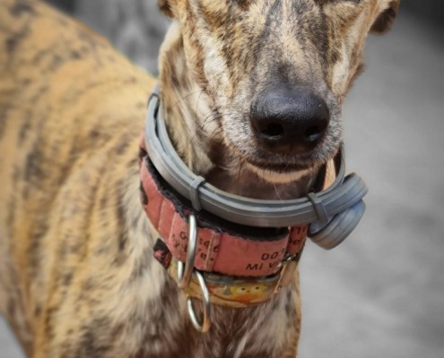 Llamé a esta galga atigrada asustada por la mujer que me envió su súplica. Quien le ofreció la mano amable del coraje y pidió ayuda. Entonces, como una forma de agradecimiento, elegí este nombre para honrarles a ambos.