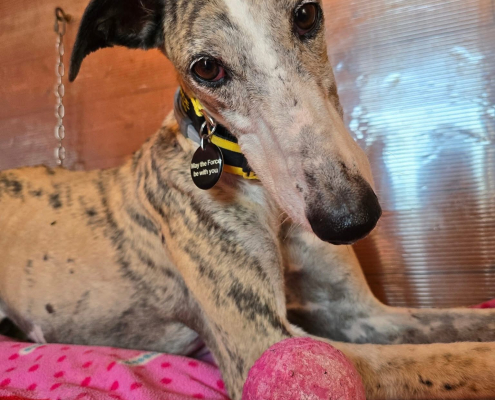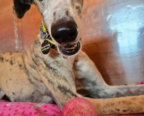 13/06/2025: Kanak descansa tras su primera limpieza profunda de la herida. El corte que tiene deja lugar a preguntas. Pero lo que sí sé es que no tiene microchip. Qué vida tan barata. De intercambio. De comercio.