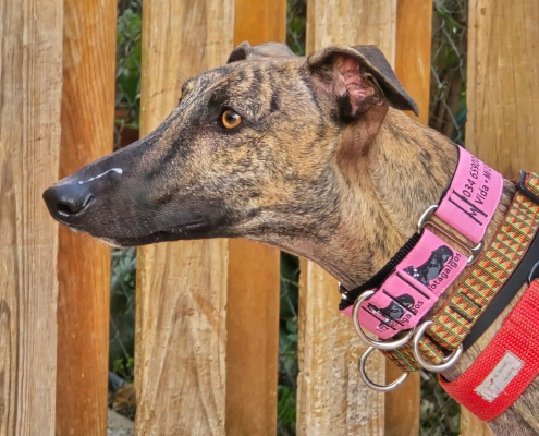 Llegó a vivir con su familia, pero al crecer se convirtió en un galgo bebé revoltoso. Ahora es un adolescente. Y ha tenido algunos problemas en el hogar donde vivía. Necesita orientación, y estoy segura de que con ella estará bien.
